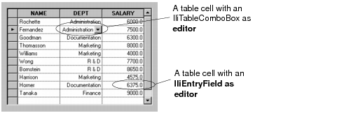 Figure 4.4 Different Types of Editors within a Table Gadget