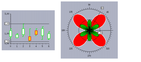 Figure 10.6 Cursors in a Cartesian Chart and in a Polar Chart