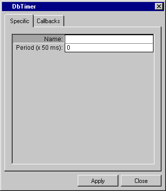 Period | Menu: None. Default: 0 Explanation: The period with which the callback associated with the gadget will be called. The value entered is multiplied by 0.05 to get seconds (for example, the user needs to type 40 if a period of 2 seconds is desired). If the value is 0, the callback is not called. |