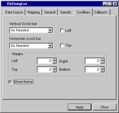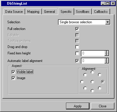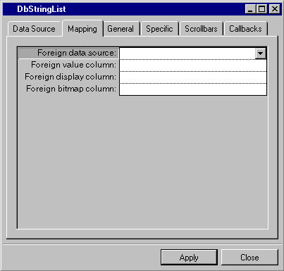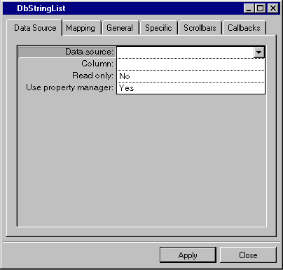 Use property manager | Menu: Yes, No. Default: No. Explanation: Yes = The DbStringList uses a property manager. No = The DbStringList does not use a property manager. |