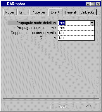 Supports out of order events | Menu: Yes, No. Default: No. Explanation: If a link is created before its node(s), it will be displayed on the grapher as soon as the node(s) is (are) created. |