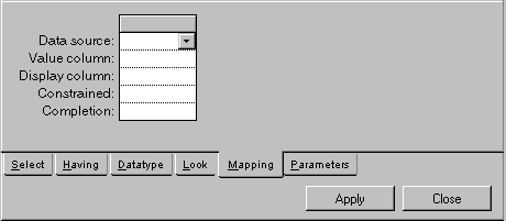 Data source | Menu: Current data sources. Default: No default. Explanation: The foreign data source containing the columns to which the values for the current column are to be mapped. If a foreign data source is specified here, creates a combo box pull-down menu in the cell showing the values in the foreign data source. |