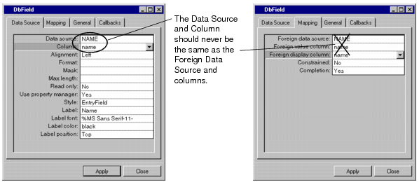 Figure 6.14 A DbField with the Same Data Source and Foreign Data Source