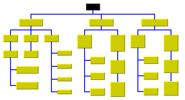 Figure 4.2 Sample Tree Layout with Flow Direction to the Bottom, Orthogonal Link Style, and Tip-Over Alignment at Some Leaf Nodes