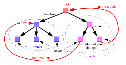 If the graph is disconnected, the layout algorithm chooses a root node for each connected component. Starting from the root node, it traverses the graph to choose the links of the spanning tree. If the graph is a pure tree, all links will be chosen. If the graph has cycles, some links will not become part of the spanning tree. These links are called non-tree links, while the links of the spanning tree are called tree links. The non-tree links are ignored in step 2 of the algorithm.