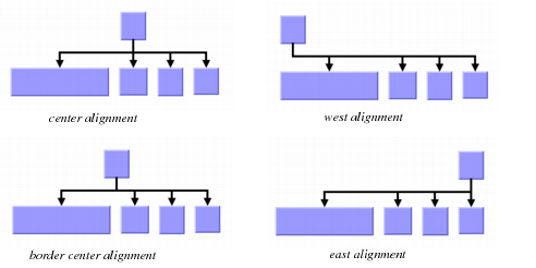 IlvLayoutTipOverAlignmentThe children are arranged sequentially instead of in parallel, and the parent node is placed with an offset to the children. For details see