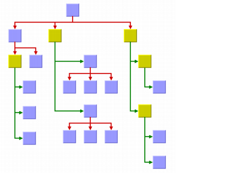 IlvLayoutMixedAlignmentEach parent node can have a different alignment. In this case the alignment of each individual node can be set, with the result that different alignments can occur in the same graph.