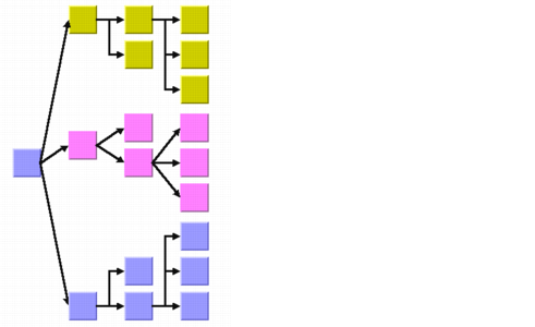 If the flow direction is to the right, the root node is placed leftmost. Each parent node is placed to the left of its children, which are normally arranged vertically. To specify the flow direction, use the following method: