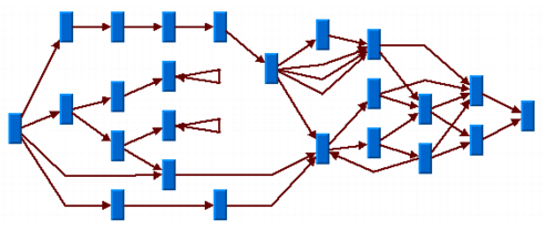 The computation time required to obtain an appropriate drawing depends most significantly on the number of bends in the links. Since the algorithm places one bend whenever a link crosses a level, the number of bends can grow relatively quickly if the layout requires many long links that span several levels. Therefore, the layout process may become very time-consuming for dense graphs (the number of links is relatively high compared to the number of nodes) or for graphs that require a large number of node levels.