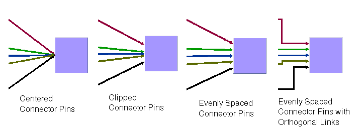 The layout algorithm positions the end points of links (the connector pins) at the nodes automatically. The connector style parameter specifies how these end points are calculated.