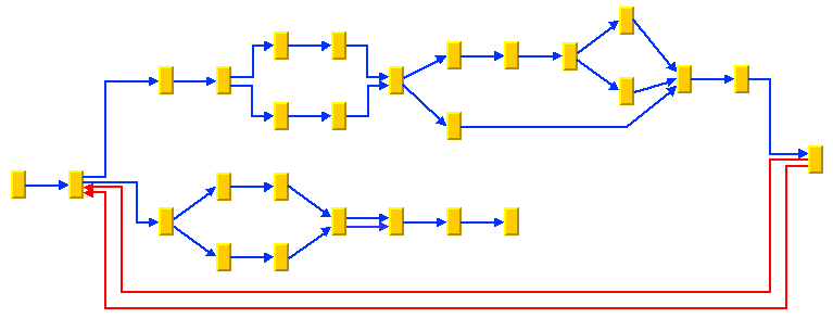 The layout algorithm tries to place the nodes such that all links are short, point in the flow direction, and do not cross each other. However, this is not always possible. Often, links cannot have the same length. If the graph has cycles, some links must be reversed against the flow direction. If the graph is nonplanar, some links have to cross each other.