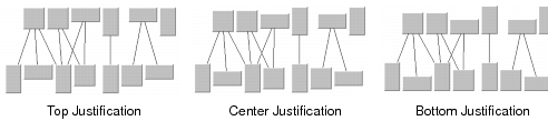 If the layout uses horizontal levels, the nodes of the same level are placed approximately at the same y-coordinate. The nodes can be justified, depending on whether the top border, or the bottom border, or the center of all nodes of the same level should have the same y-coordinate.