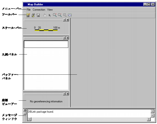Rogue Wave Views マップ・ビルダーを起動すると、次のメイン・ウィンドウが表示されます。