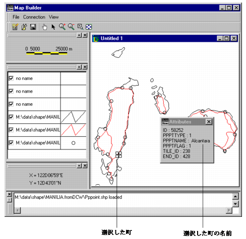 ここで、付加した町のアトリビュートが表示されるかどうかを確認できます。