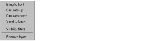 レイヤーの順序と可視性フィルターは変更できます。変更する場合は、「凡例 (Legend)」ウィンドウのレイヤー名を右クリックします。次のメニューが表示されます。