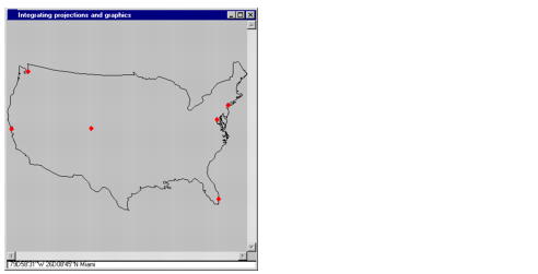 アプリケーションによって、一部の都市を伴う米国合衆国の地図が表示されます。