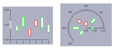 The way the rectangular scales are positioned depends on the type of the projection. In Cartesian charts (using a Cartesian projection), they will be displayed orthogonally. In polar charts (using a polar projection), they will be displayed radially.