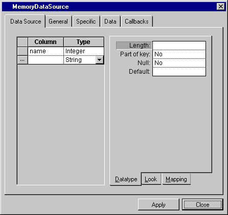 A new DbField gadget and a memory data source should then be created. The DbField gadget will be connected to the single column of the memory data source. The memory table must be set up as a single column table that accepts an integer type.
