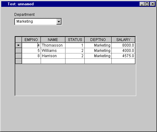 You are now able to enter a department in the DbField that will be entered into the memory table column and taken as the “department” parameter value. It will then be used to make a selection in the SQL table.
