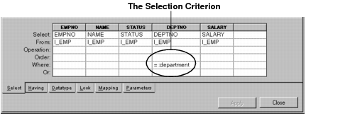 Figure 8.7 Specifying the Selection Criterion for a SQL Table