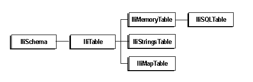 IliTable class in Data Access. This class is an abstract class that defines objects capable of managing a collection of rows. Each table has a schema that is defined by the