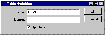 5. Choose Properties from the File menu of the SQL Data Source inspector. Ensure that the Updatable Table property is set to I_EMP.