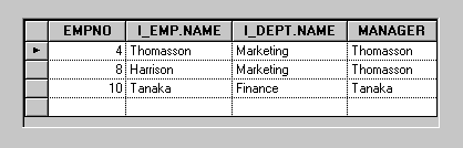 Thomasson in the MANAGER column to list only those employees whose employee number is less than 5 and whose manager is Thomasson.