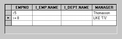 The memory table can contain more than one row. All conditions that appear on the same line will be combined with an AND operator when the query is applied. Conditions that appear on different lines will be combined with an OR operator.