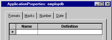 2. Click the Format page. On this page, type a name for the format in the Name field and define a string, number, or date format in the Definition field (see