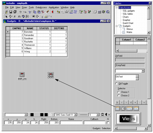 , drag the Memory Data Source gadget from the Data Access palette of the Palettes panel to the Main window.