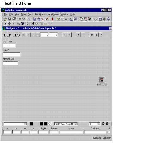 You use a form by connecting each text field gadget of a form to a column in a particular data source. The column cells of the current record can then be displayed in the gadgets placed in the window as you wish.