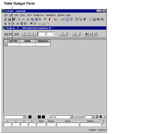 A form is a set of gadgets that are used to show one data source row (record) at a time in a more flexible way than is possible with a table gadget.