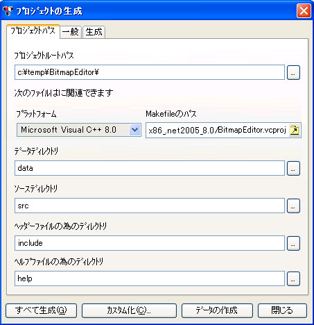メモ:生成されたファイルは、作業しているプラットフォームに応じて、.cpp、.h、.odv、.dbm、Makefile あるいは .dsp ファイルになります。 |