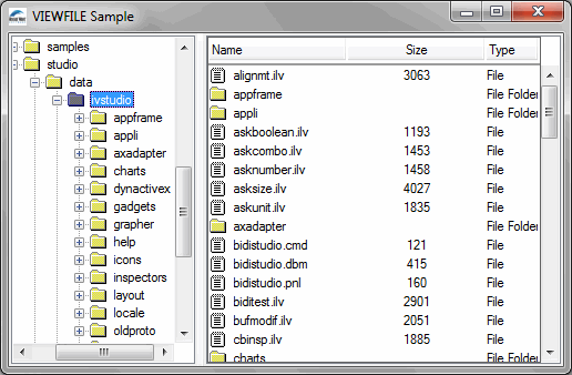 void FileViewer::fillTree(IlvPathName& path, IlvTreeGadgetItem* parent) { // Read the 'path' directory and insert each sub-folder as a child of // the item 'parent'. if (path.openDir()) { IlvPathName file; while (path.readDir(file)) { if (file.isDirectory() && file.getDirectory(IlvFalse) != IlvString(".") && file.getDirectory(IlvFalse) != IlvString("..")) { IlvTreeGadgetItem* item = (IlvTreeGadgetItem*)createFileItem(file, _tree); item->setUnknownChildCount(IlvTrue); // Insert the directory 'file' into parent. parent->insertChild(item); // Compute the absolute path name. IlvPathName* absPathName=new IlvPathName(path); absPathName->merge(file); item->setclientData(absPathName) } } path.closeDir(); // Sort the added items. _tree->sort(parent, 1); } } |