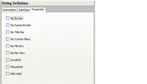 Subclass tab contains the name of the dialog’s subclass. This entry is optional.