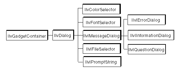 IlvDialog has various subclasses that implement standard dialog boxes.