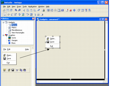 IlvPopupMenu) in the workspace: