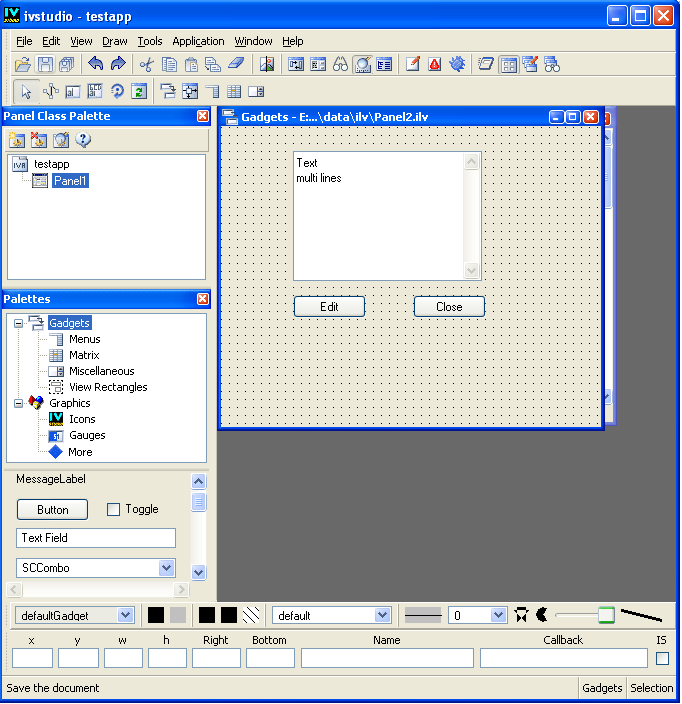 To do so, make sure that the panel2.ilv Gadgets buffer window is activated.