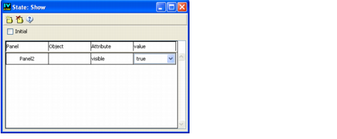 The application now has two states: Root and Show. Using the State inspector, you can define the requirements for each state. You want Panel2 to be visible when the application is in the Show state.