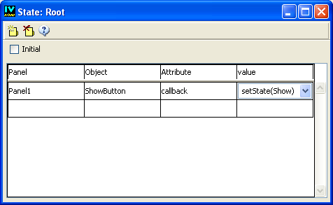 5. In the Object column, select ShowButton from the list of objects in the combo box.