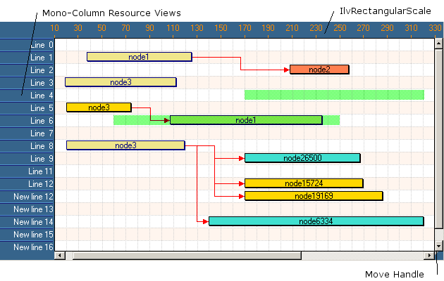 IlvGanttChart. Most of their functionalities are common or similar. The main differences between the two classes consist in how they manage scales and resources: