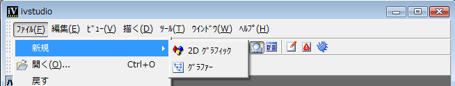 「ファイル」>「新規」メニューに、メニュー・アイテム「グラファー」が加わっています。これで新規のグラファー・バッファーを作成できます。これはコマンド