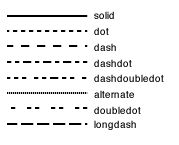 IlvDisplay クラスは、名前を使用して取得できる定義済みの線の種類一式を提供します。