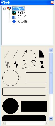 パレット・パネルは、作業領域に直接ドラッグ・アンド・ドロップして、最終的なアプリケーションを構成するグラフィック・パネルを作成できる定義済みガジェットとグラフィックを提供します。
