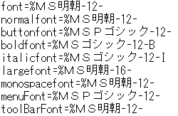 以下は、日本語対応 Solaris システムで使用されているフォント・ステートメントの例です。