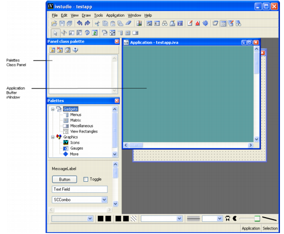 When you launch Rogue Wave Views Studio, a default Application buffer window, called testapp, is opened.