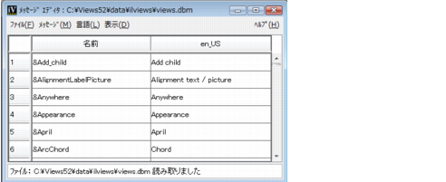 開く | ダイアログ・ボックスが開き、メッセージ・エディターによって以前保存されたメッセージ・データベース・ファイルを選択、ロードすることができます。 |