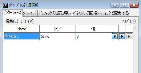 インターフェース - グループあるいはプロトタイプ用に定義されている全アトリビュートへのアクセス、編集ができます。これはデフォルト表示です。