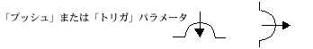 振る舞いの通知には、単にアトリビュートの値を設定する代わりに、それらの監視アトリビュートに値を伝達するという二次作用があります。この場合、監視アトリビュートの振る舞いは遂次評価されます。そのような振る舞い (トリガー・アクセサー) は出力パラメーターの上に外向き矢印を表示し、接続された値は内向き矢印を表示します。