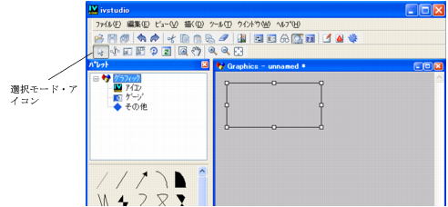 選択モードによって、オブジェクトの選択、移動、リサイズ、さらに別の一般的な編集操作を行うことができます。このモードは、デフォルトでは、Rogue Wave Views Studio の起動時にアクティブになります。